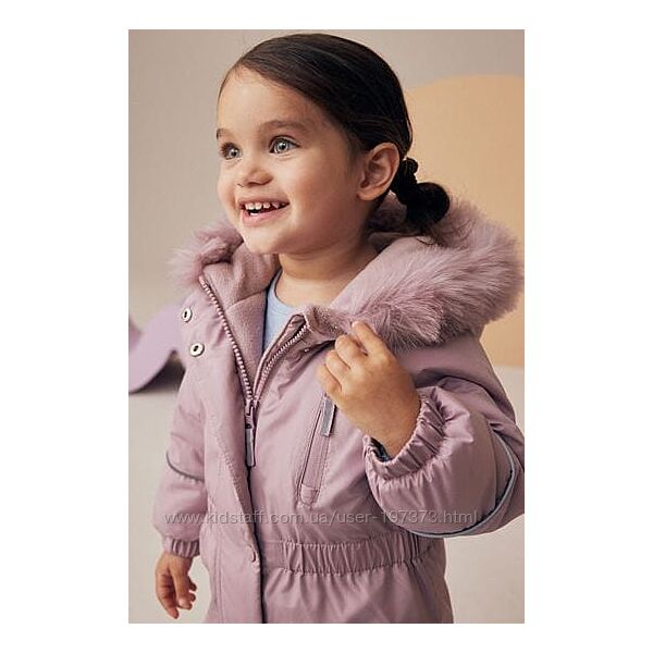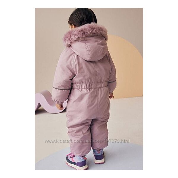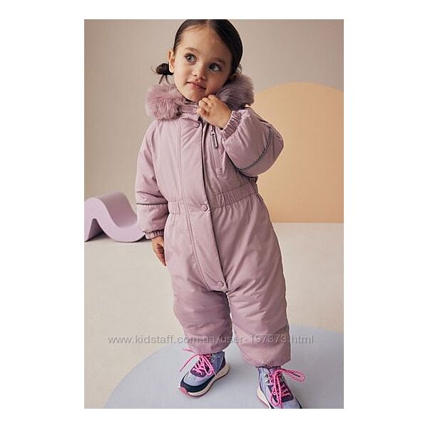 Зимний комбинезон Next , цвет сиренево-фиолетовый. Сверху водонепроницаемая ткань, внутри подкладка флис, утеплитель полиэстер. Машинная стирка.Замеры по просьбе пришлю.