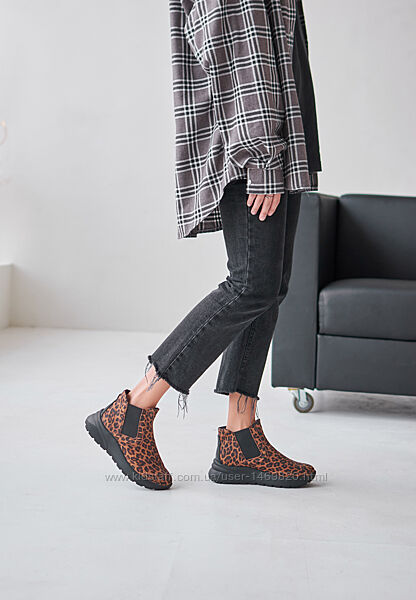 Демисезонные стильные низкие ботинки челси леопардовые.