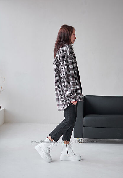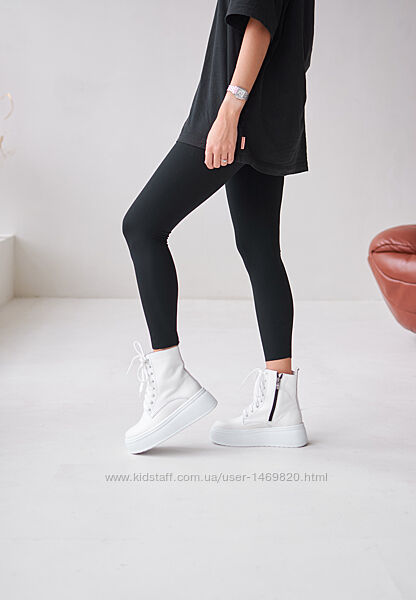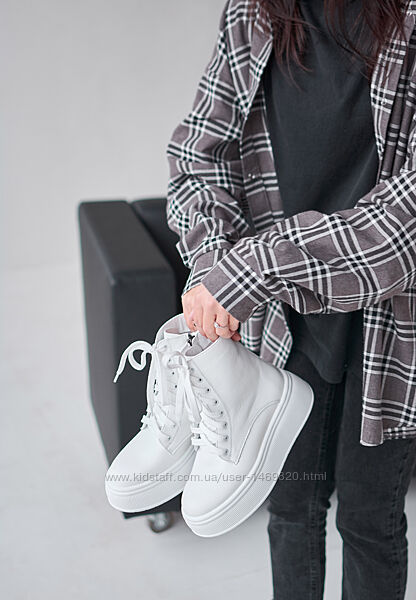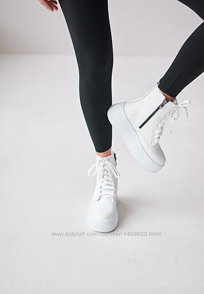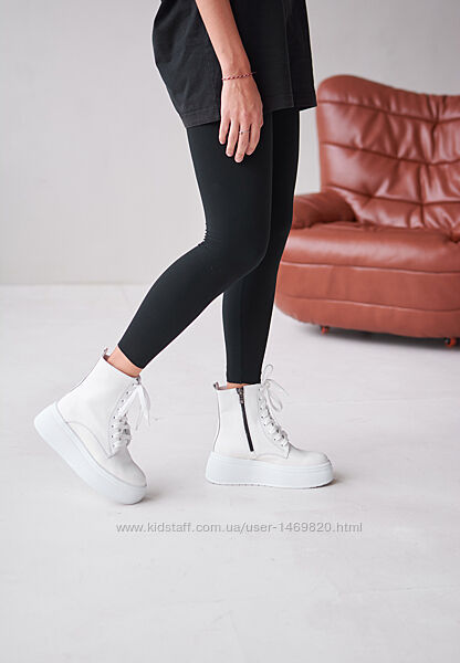 Демисезонные стильные ботинки высокие белые на толстой подошве.