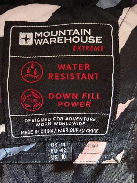 Женская куртка пуховик Mountain Warehouse Cosy Wrap Extreme с принтом размер UK 14 US 10 EU 42. Почувствуйте себя комфортно и защищенно с курткой Mountain Warehouse Cosy Wrap Extreme с ярким и уникальным принтом. Утеплитель из утиного пера для максимального тепла и большой капюшон — это надежная куртка с современным дизайном. Куртка на молнии и с запахом на кнопках. Два удобных боковых кармана. В рукавах резинки. Куртка обработана прочным водоотталкивающим средством (DWR), выдерживает небольшой дождь, влага будет собираться в капли и скатываться с ткани. Состав ткани: основная ткань: полиэстер 100% подкладка: полиэстер 100% наполнитель: серый утиный пух 80%, серое утиное перо 20%. Замеры: длина - 99 см ПОГ - 54 см ПОБ - 58 см длина рукава - 67 см.