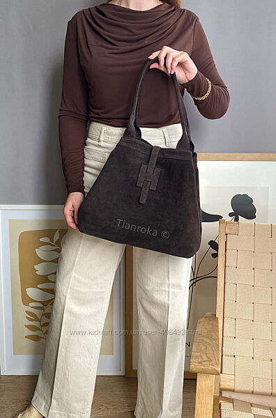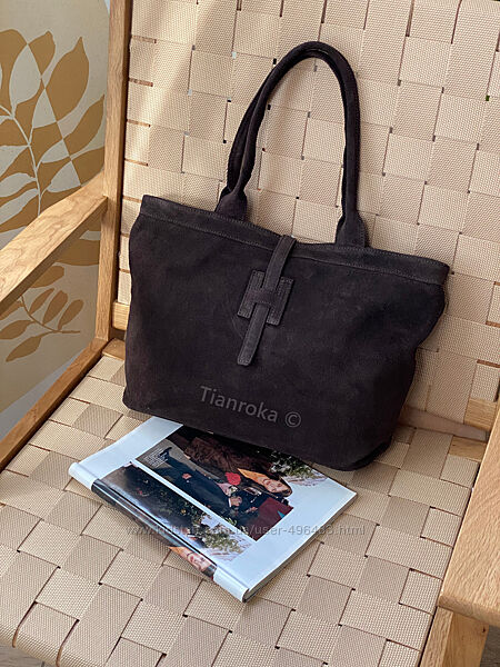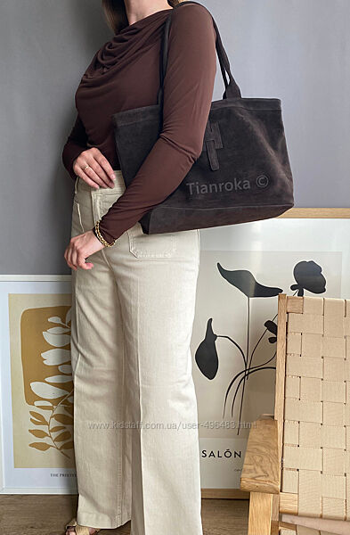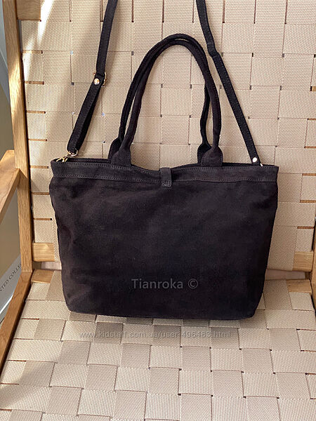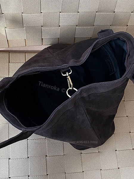 Замшева сумка шопер дуже містка і зручна, ручки добре лежать на плечі, також є довгий ремінець.
