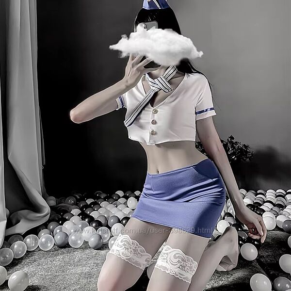 В комплект входит короткий топ на пуговицах с глубоким вырезом, подчеркивающий линию груди. Облегающая мини-юбка, которая соблазнительно акцентирует внимание на ногах. И изящная шапочка для пикантности образа. Дополнением служит галстук, который завершает дерзкий и обольстительный образ. Этот костюм создан для тех, кто хочет добавить в отношения нотку игривости и страсти.