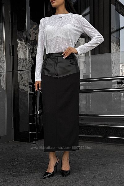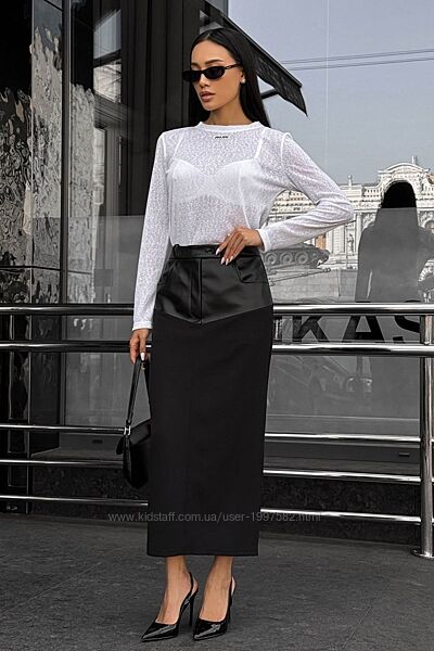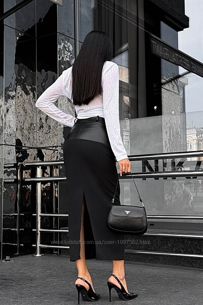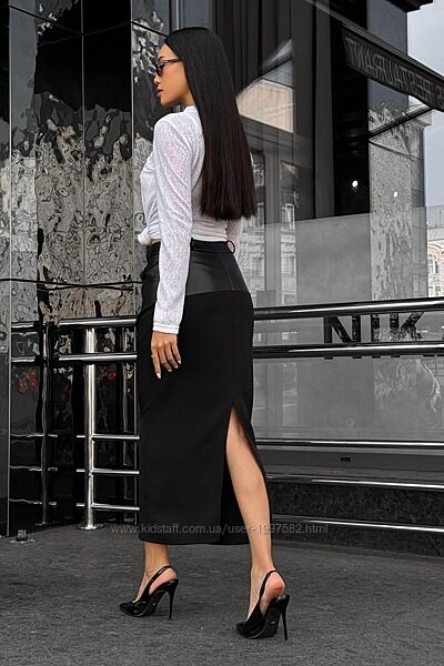 Подробное описание: Спідниця шкіряна з високою талією з екошкіри з розрізом міді чорна