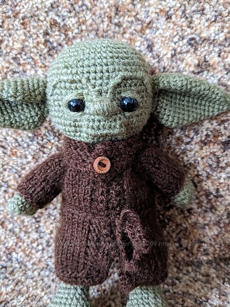 Нарешті серед моїх робіт з´явився фантастичний малюк Йода)) Як на мене, він вийшов дуже гарненьким)Іграшка під замовлення. Зв´язана з акрилових ниток, наповнювач - холлофайбер, кофтинка оздоблена дерев´яним ґудзиком, знімається. Висота - 17 см. Можу виготовити таких малюків декілька (за потребою), або більшого розміру. Доставка - Нова пошта, оплата - одразу на кртку, або накладений платіж. Повернення немає.