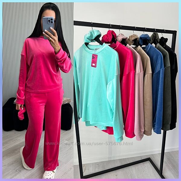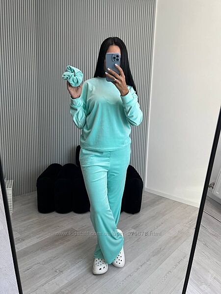 Подробное описание: 42-46, 48-52 Плюшевий костюмчик штани, кофта, резиночка для волосся
