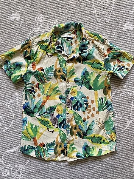 Подробное описание: Теніска сорочка джунглі next, 6-7 р, 116-122 см льон віскоза