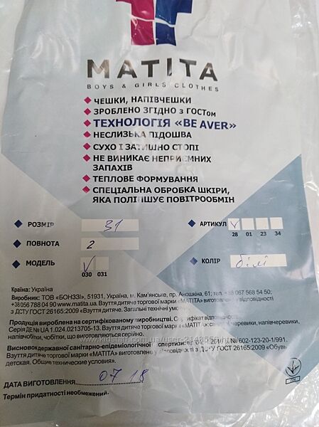 В наявності чешки для хлопчика, дівчинки у білому кольорі від торгової марки Матіта ( Україна). Матеріал - шкіра.