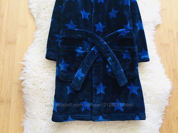 Mothercare 2-4 рок., флісовий, махровий, пухнастий халат з Зірками. теплий, банний, на море або в басейн, насичено - синього кольору Океан в блакитні зірки. Стан: нового, зав´язується на талії пояском. є Кишені. довжина 60; рукав від вороту 41Другие объявления продавца