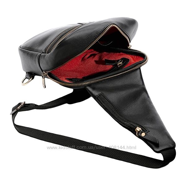 Практична чоловіча сумка-слінг. Сумка виготовлена з натуральної високоякісної телячої шкіри на блискавці, усередині на щільній тканинній підкладці. Дана модель є дуже трендовою цього сезону. Ідеально підходить для сучасної та активної людини, яка звикла почуватися стильно і в той же час комфортно. На лицьовій стороні сумки 4 кишені на блискавці. Усередині основного відділення слінг має дві кишені, одна з них на блискавці. Ще одна кишеня зовні на тильній стороні. Ремінь можна пристебнути на праву або ліву сторону сумки. Завдяки великій кількості кишень сумка дуже містка.