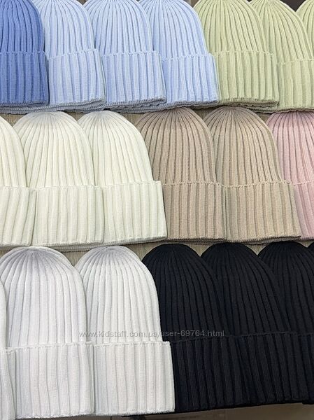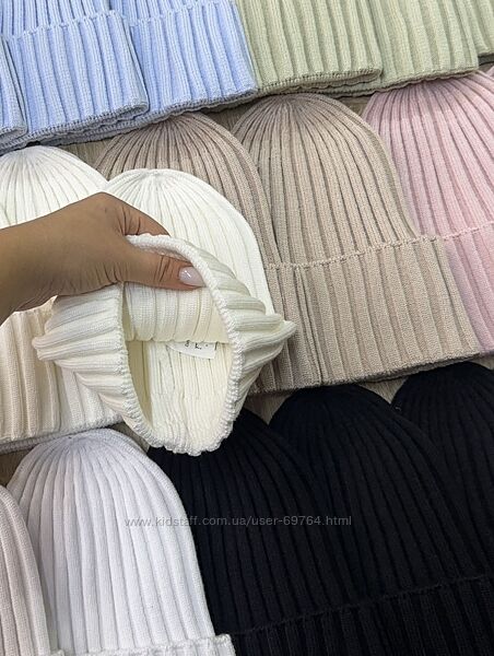 Шапка одинарной вязки с заворотом, подойдет на холодную осень-зиму Р. 50-52