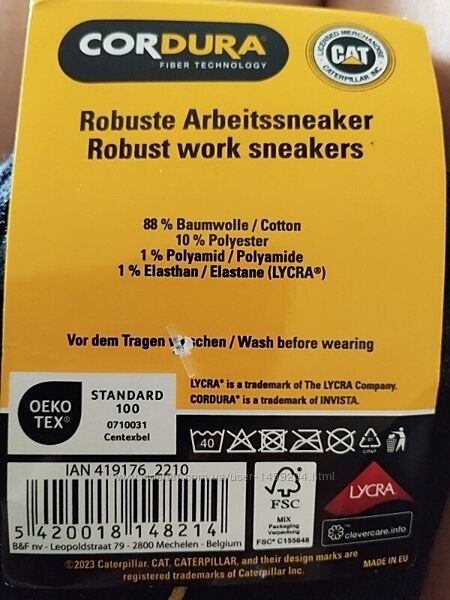 Оригинал! Мужские носки Cat Caterpillar Cordura Robuste Arbeitssneaker/work sneakers.