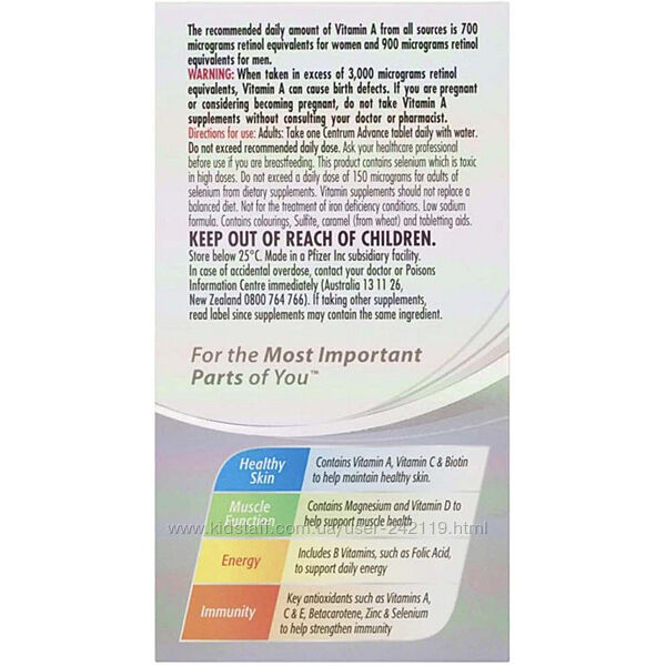 Подробное описание: Мультивітаміни з мінералами для дорослих Centrum Advance 100 шт
