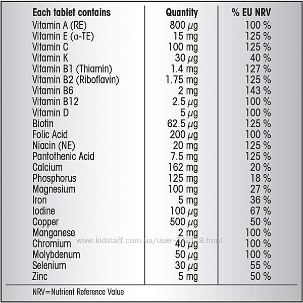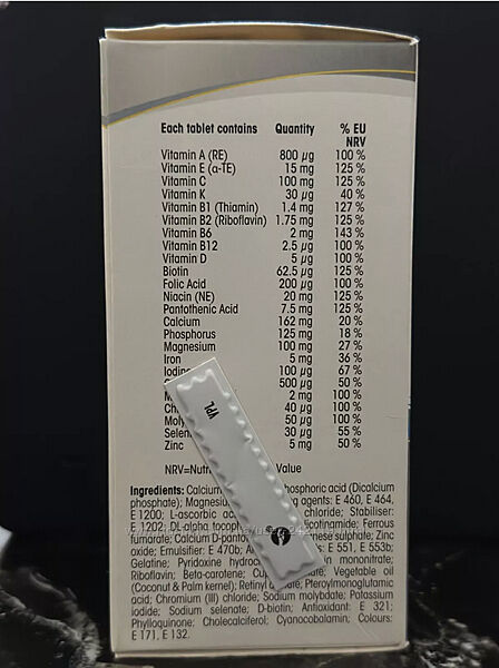 Комплекс Centrum Advance містить 24 окремі вітаміни та мінерали, включаючи всі 13 основних вітамінів, в одній таблетці, яку легко проковтнути. Кожна таблетка містить вітамін А, вітамін Е, вітамін С, вітамін К, вітамін В1, вітамін В2, вітамін В6, вітамін В12, вітамін D, біотин, фолієву кислоту, ніацин, пантотенову кислоту, кальцій, фосфор, магній, залізо, йод, мідь, марганець, хром, молібден, селен, цинк, полівітаміни з високоякісними живильними мікроелементами для задоволення ваших потреб у харчуванні.