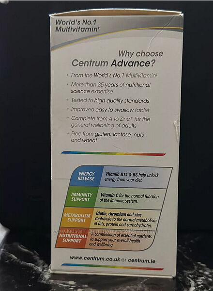 Centrum Advance не містить цукру, глютена та лактози та спирається на більш ніж 35-річний досвід у галузі харчування.