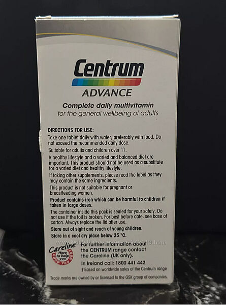 термін придатності 09/2024Centrum Advance – це повноцінна полівітамінна та полімінеральна добавка зі збалансованим поєднанням поживних речовин для щоденного застосування. Centrum Advance доповнює вашу дієту та спосіб життя, оскільки містить рекомендовані щодня необхідні вітаміни та мінерали.
