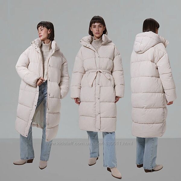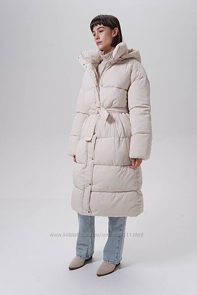 Пуховик жіночий довгий з поясом обємний оверсайз
