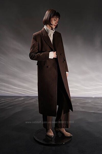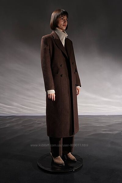 Подробное описание: Пальто жіноче довге пряме з підплічниками, шоколад