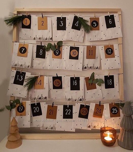 2) оформити відразу всі завдання в адвент-календарь, але домовитись з дитиною, що вона буде відкривати їх по черзі, щоб ви заздалегідь встигли заховати подарунок у потрібну схованку