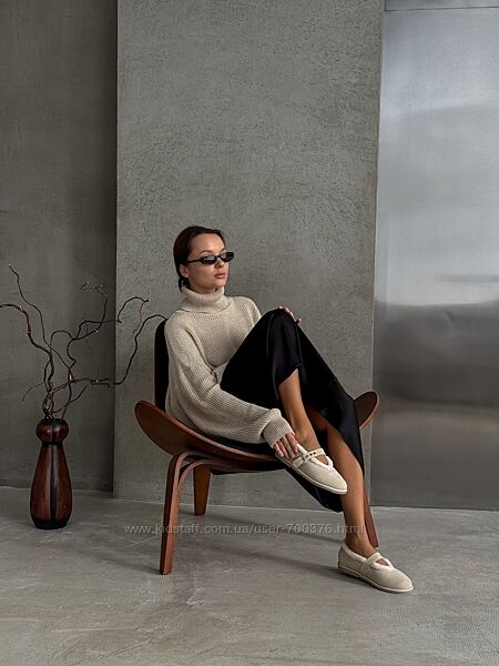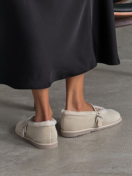 Подробное описание: Балетки barefoot з хутром, натуральна замша, слонова кістка