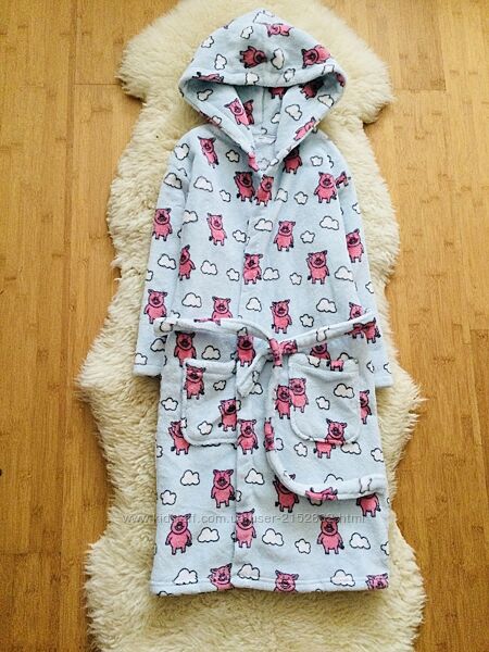 8-9 рок Marks&Spencer флісовий, махровий, пухнастий халат небесного кольору з принтом Хрюшек, теплий, банний, на море або в басейн. Стан: нового, слідів носки нема, зав´язується на талії пояском. є Кишені. довжина 85; рукав від вороту 55Другие объявления продавца