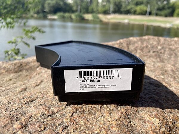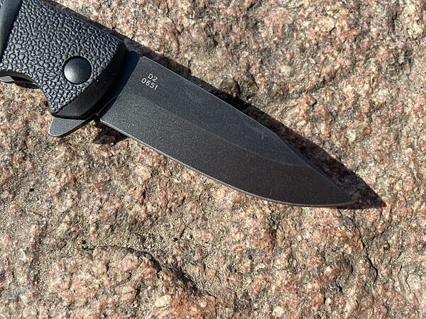 Чорна алюмінієва рукоятка Boker Kalashnikov нагадує штик-ніж знаменитої штурмової гвинтівки, а рельєфні накладки забезпечують надійний хват у будь-якій ситуації. Лезо з чорним покриттям виготовлено з нержавіючої сталі D2 та відкривається за допомогою плавника.