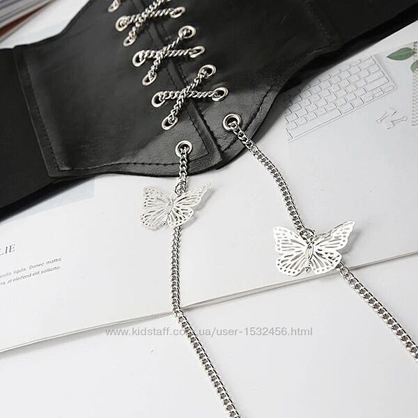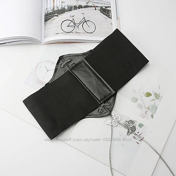 Подробное описание: Тренд жіночий корсет штучна шкіра на резинці широкий пояс ланцюжки метелики