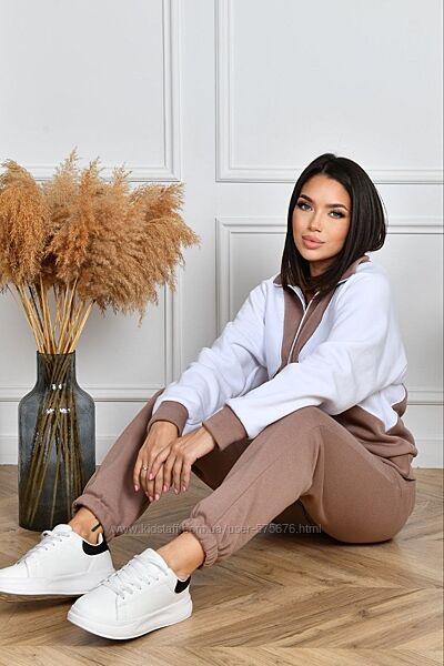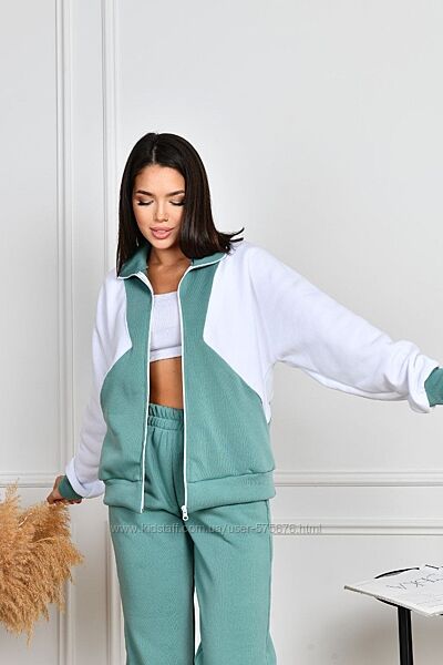 Дуже стильний спортивний костюм із вставками: кофта на блискавці, штани з кишенями, низ на манжеті.Розміри:42-44,46-48