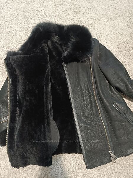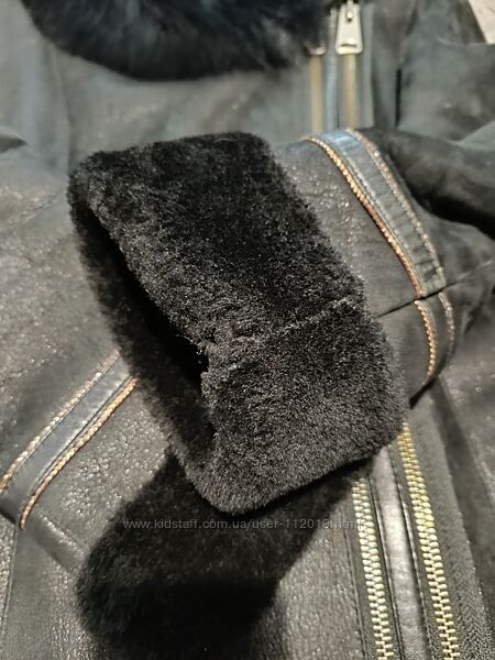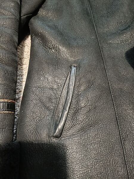 Дублянка з натуральної шліфованої шкіри. Гарний комір, хутро не знімається. Рукава не затерті. Кармани гарно оброблені та міцні. Стан гарний, звісно носила її активно але ще новій володарці послугує довго. Не важка, тепла. Один замочок декоративний, другий замочок застібка, міцна, подвійна, можна знизу розстібнути для зручності коли сідаєте. Носила при ОГ 115 см. Причина продажу - втрата ваги на 4 розміри, тож вона на мене стала завелика. Заміри по виробу ПОГ 57-58 см Плече 13 см Рукав 67 см По плечам 47 см Довжина по спинці 68 см.