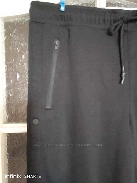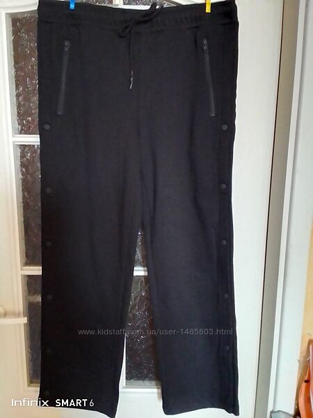 Нові трикотажні утеплені штани вільного крою ,зверху на широкій резинці та шнурку , попереду є дві кишені на блискавці, позаду одна накладна кишеня, по бокових швах розташовані планки на кнопках. Всередині з начосом. Трикотаж дуже приємний на дотик, м´який та теплий! Штанці відмінної якості і дуже круто виглядають! Підійдуть як чоловікам, так і жінкам!Колір: чорний.