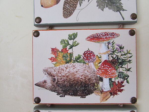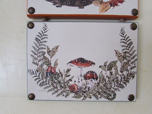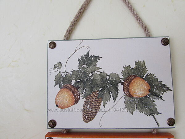 Підвісне пано складається з трьох частин, з′єднаних канатиком.Пано декороване у техніці трансферного перенесення зображення.