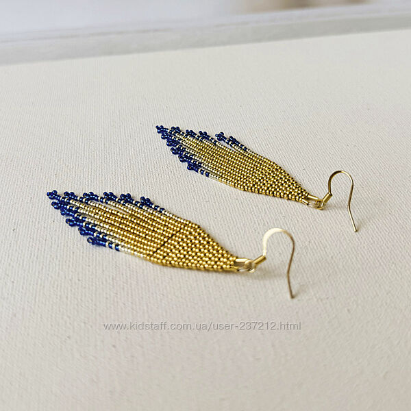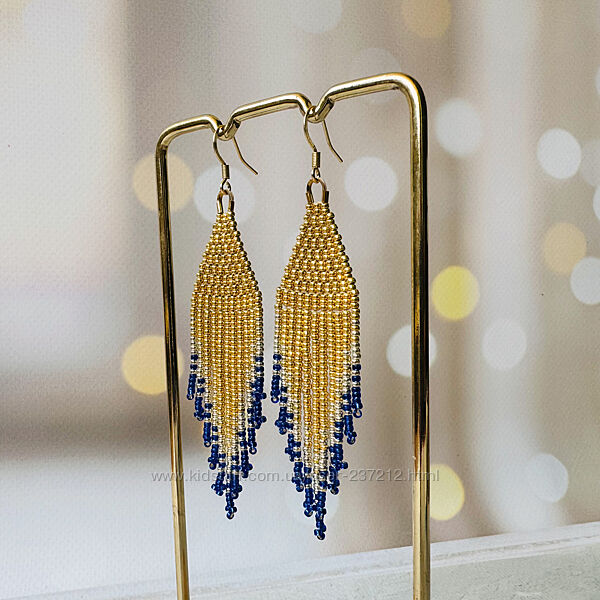 Подробное описание: Длинные золотые серьги из бисера, бисерные серьги с бахромой