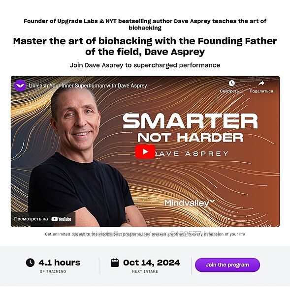 Подробное описание: Mindvalley Smarter Not Harder Dave Asprey 2024