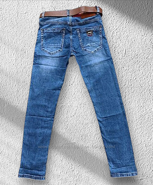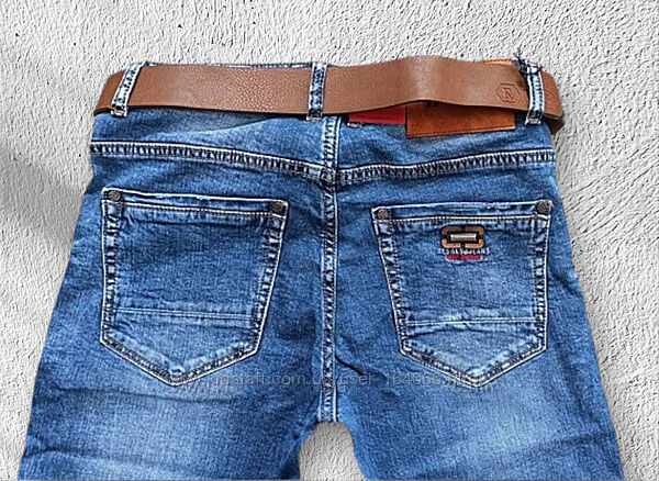 Джинси застібаються на змійку, у комплект йде ремінь.