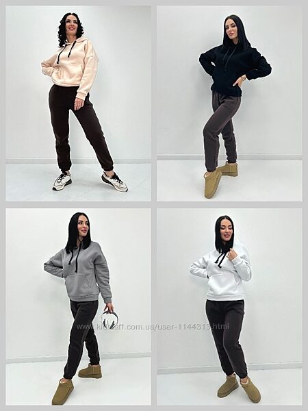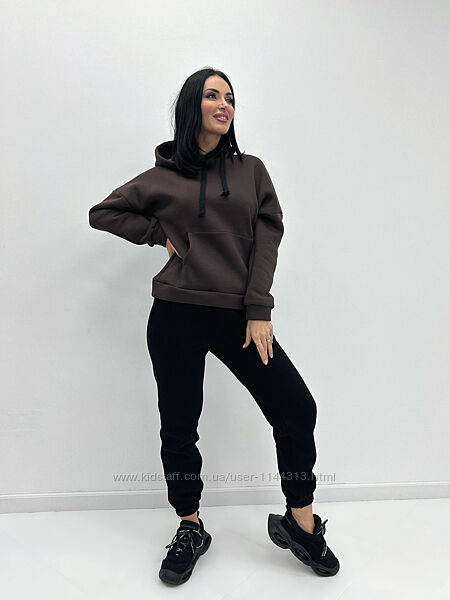 Худі доступно в десяти кольорах, забезпечуючи широкий вибір для найрізноманітніших смаків. Верх костюма оснащений функціональним капюшоном і глибокими карманами, тому ідеально підходить для прохолодних днів.Спортивні штани, які пропонуються в двох базових кольорах (чорному і шоколадному), легко поєднуються з будь-яким худі, створюючи стильний і універсальний комплект.