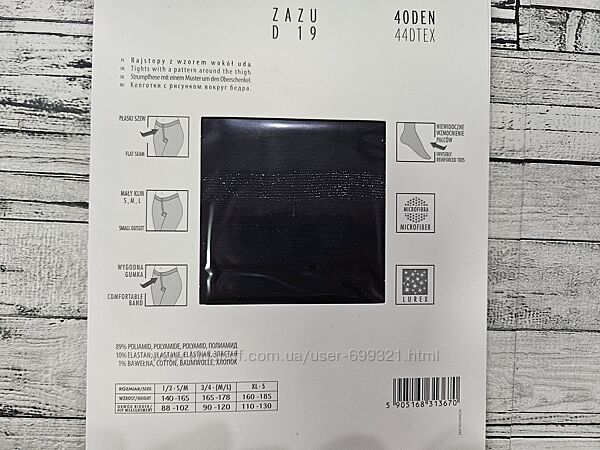 Колготки Zazu D19 - ідеальне поєднання комфорту та чуттєвої елегантності.Стильна імітація панчіх з декоративним блискучим ремінцем на стегні додає неповторного, спокусливого характеру всьому образу.