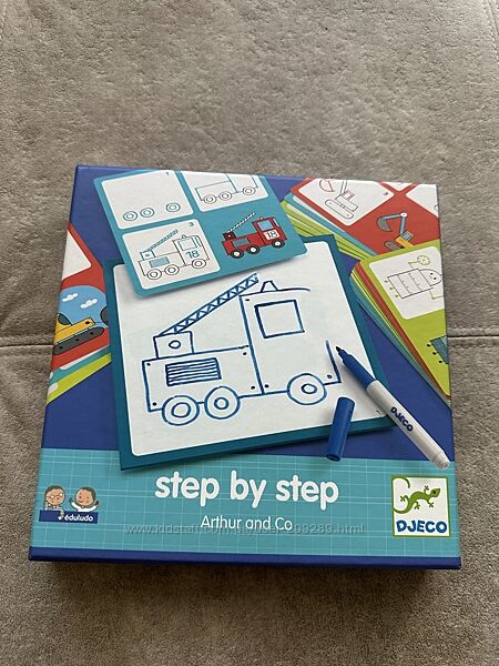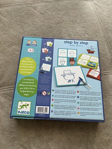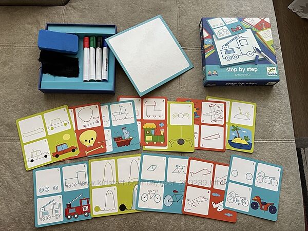 Продаєм свої іграшки. Набір французької фірми Gjeco. Дуже якісний та яскравий. За допомогою гри малюк крок за кроком навчається малюванню. Містить: 12 навчальних картки, 1 дошка, що стирається, сухі маркер. Розмір упаковки: 21,5 х21, 5х3 смНавчися малювати лицарів та їхніх друзів, виконуючи малюнки поетапно за моделями на картах.