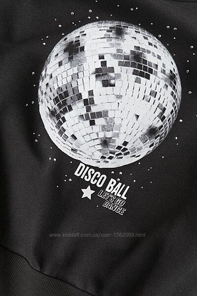 Стильный укороченный свитшот для девочек от H&M!Без утеплителя. Горловина, рукава и низ на манжете. Свободный, к низу зауженный. Спущенный рукав. Цвет- темно-серый с рисунком впереди.