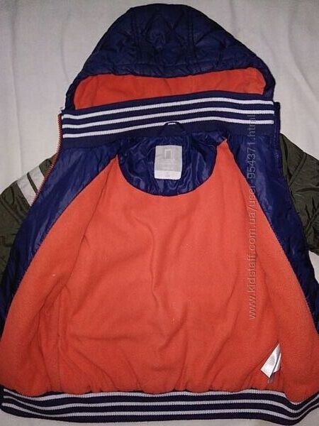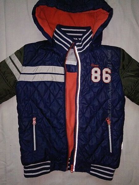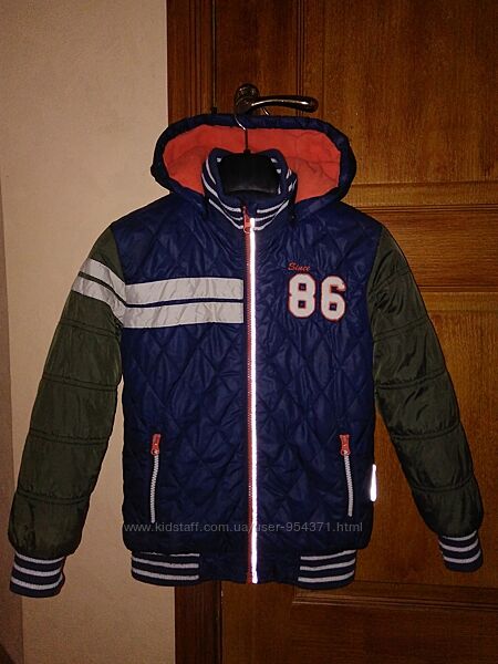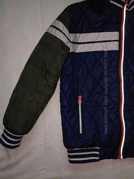 Стеганная деми куртка на 8лет р.128Состояние очень хорошее, ньюансов нет, цвет комбинированный синий с хаки,