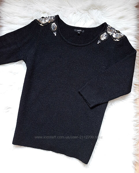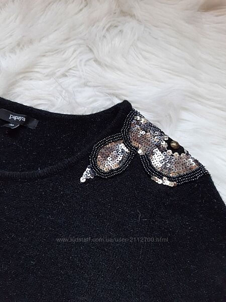 Подробное описание: Шикарний чорний ворсистий светр з вишивкою на плечах Papaya