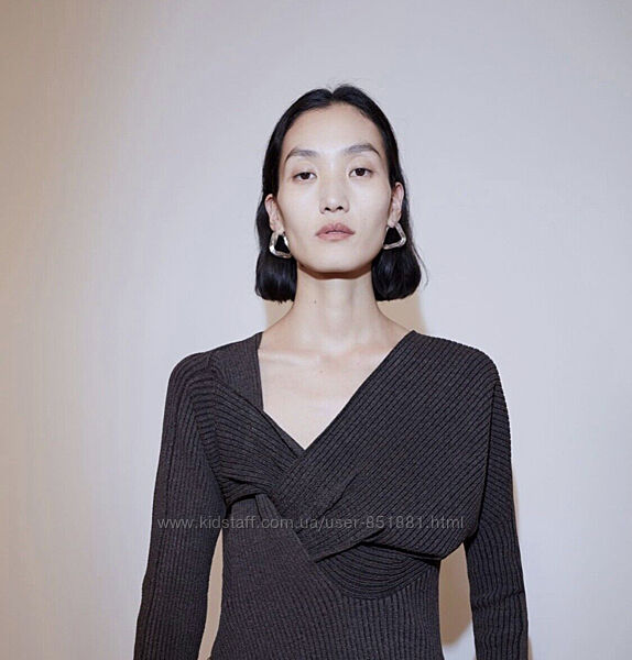 Трендова кофта-лонгслів в рубчик з фигурним вирізом NA-KDСхожа на Bottega Veneta Brown Twist Detail Long Sleeved V-Neck Ribbed Knit Sweater