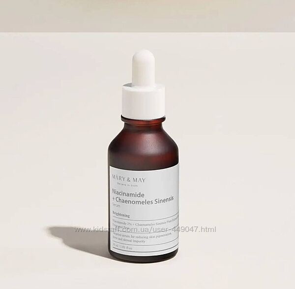 🔥Сироватка для вирівнювання тону шкіри Mary&May Niacinamide Chaenomeles Sinensis Serum 30 мл🔥Унікальне поєднання ніацинаміду та екстракту китайської AIVA для спрямованого бою тьматом, нерівномірним тоном шкіри та пігментацією!
