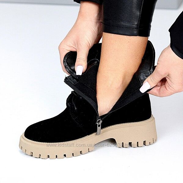 Подробное описание: Черевики жіночі демі з натуральноі замші/шкіри чорного кольору