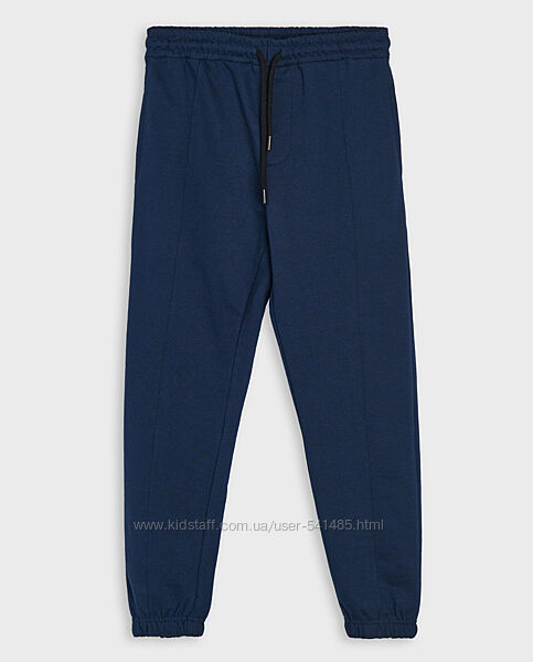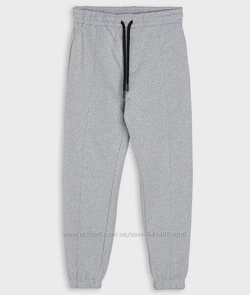 Джоггери із комплекту для хлопчика із м´якого трикотажу. З внутрішньої сторони начіс, попереду бічні кишені та декоративна строчка. У поясі широка гумка і шнурок, що діє. По низу штанін широка резинка. Продаються поштучно, бірка на одних. З колекції дитячого одягу польського виробника Sinsay.Розмір у наявності: