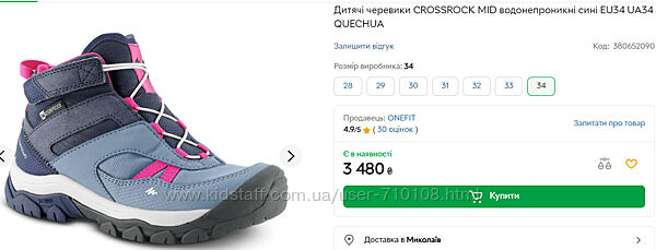 Подробное описание: Ботинки quechua crossrock waterproof. р. 34