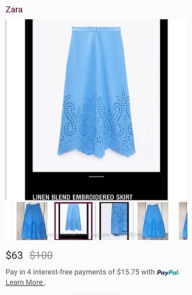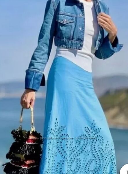 Юбка Zara лен с прошвой. Спідниця
