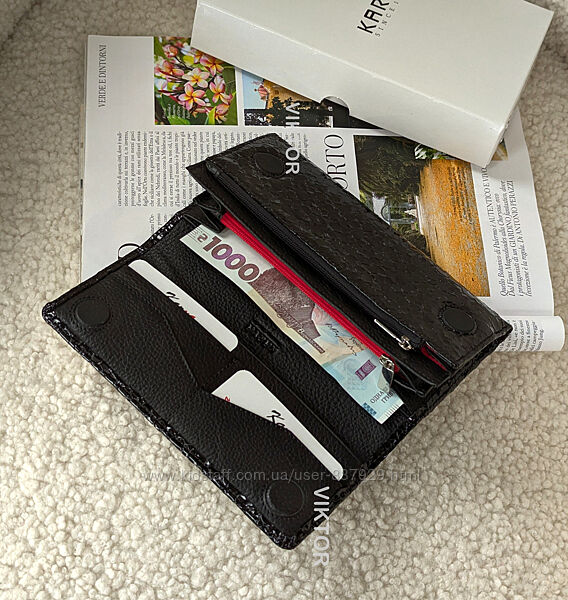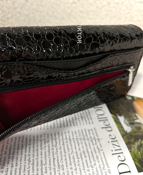 📞 Для быстрой связи - пишите в Viber : (099) 325 19 44Удобный и вместительный кошелек, внутри два основных отдела, перегородка с молнией, карман на змейке, 10 ячеек для пластиковых карт. Сам кошелек закрывается клапаном на двух магнитах. Сзади снаружи -карман на змейке и 2 потайных отдела.