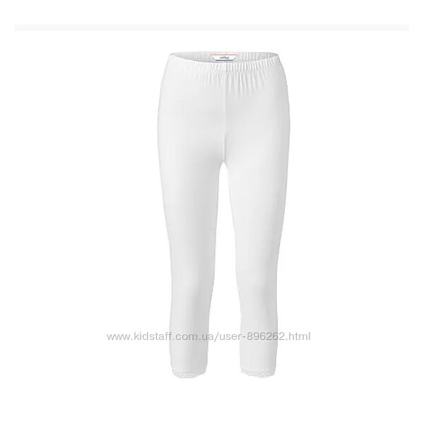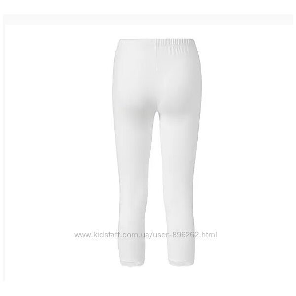 Легінси 3/4 з мереживною обробкою, білі. М´яка бавовна еластичної якості. Еластичний комфортний пояс - без перетяжок. Без надокучливих бічних швів. Мереживна обробка подолу. Непрозорий. З еластаном: зберігає форму, ідеально підходить, високий комфорт при носінні. Ці легінси захищають водні ресурси. Перевірено на вміст шкідливих речовин – сторонніми акредитованими інститутами.