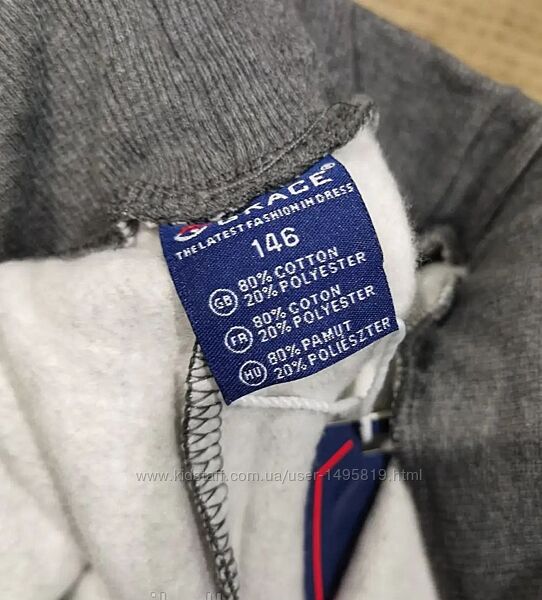 Якісні трикотажні спортивні штани для хлопців від угорьської фірми Grace. Стильна моделька, добре сідає по фігурі. Верх - широка резинка з утягуючими шнурками. Низ манжет. Гарна якість, прикрашені принтом. Утеплені щільним начосом.Розмірний ряд: 134-140-146-152-148-164