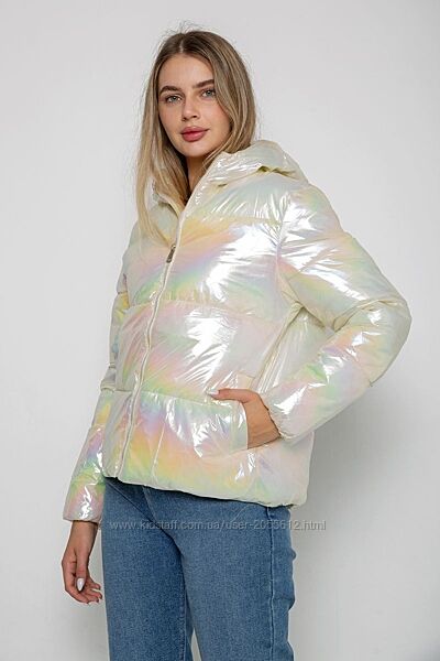 Коротка демісезонна куртка вільного крою виготовлена з плащівки. Знизу і на рукавах фіксується резинками. Є капюшон. Застібається на блискавку. Куртка з підкладкою і утеплювачем. Є дві кишені.Розміри: S, M, L, XL, XXL