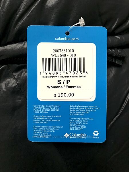 Куртка зимова Columbia Peak to Park™ II Insulated Hooded Jacket White 2007881Увага! В наявності також чорний та оливковий кольори